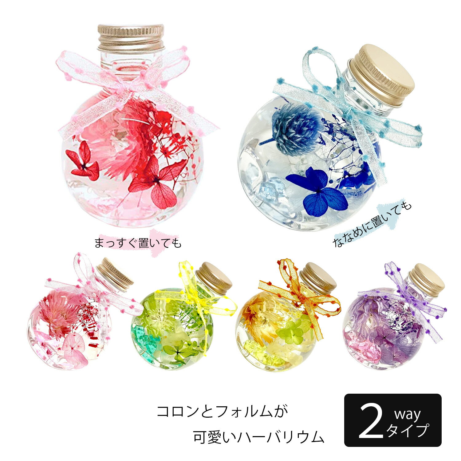 商品情報サイズ&仕様・高さ:約9.3cm / 幅:約7,2cm / ・ボトル素材:ガラス製・内容物:プリザーブドフラワー、高級シリコンオイル(国産)ギフトについて・ギフトとしてご購入頂く際は、注文確定前にお届け先のご住所を必ずご確認下さい。・ギフト設定:商品に金額が記載された明細書は同封されません。・当店では化粧箱(BOX)が「あり」と「なし」の商品がございますので商品画像を必ずご確認下さい。・ラッピングは行っておりませんので無料の手提げ袋をご利用下さい。明細書金額が記載された明細書は同封されません。メッセージカード無料でメッセージカードを同封致します。ご注文ページの「備考欄」にご希望のメッセージを50文字以内でご入力下さい。複数商品を購入された際は別々の内容でそれぞれメッセージカードを付けることが可能です。その旨を備考欄にご記入ください。(例)ツリー型の紫のハーバリウム→[メッセージ内容]円柱型の紫のハーバリウム→[メッセージ内容]※絵文字の使用は不可です。※シンプルなメッセージカードに印字致します。(デザインや文字のフォントをご指定頂くことはできませんので予めご了承下さい)手提げ袋紙製の手提げ袋(無地)を無料で同封致します。※手提げ袋の色やサイズはご指定頂けませんので予めご了承下さい。最短出荷日1〜2日以内に発送予定(店舗休業日を除く)商品の特性・一点ずつ手作りであり、自然のものを使用しているため色合いや形には個体差があります。また、実物に近いお色のお写真を使用しておりますがご使用の液晶画面により実物の色と異なって見える場合がございます。・内容物は天然素材の為、デザインには個体差があります。また、商品の作成時に葉や実等が分散して一部沈んでしまう場合がありますが、不良ではございませんのでご理解頂けますようよろしくお願い致します。・使用している花材・BOXや資材等は、やむを得ず変更になる場合がございます。ご了承下さい。・直射日光に当てないで下さい。色落ちの原因となる場合がございます。配送に関するご注意佐川急便様の規定により、お届け先が個人宅以外(法人・病院など)の場合は時間帯指定をご利用いただけなくなりました。 (離島や地域によりますが「指定日配達」はしていただけます。) ご注文の際に時間帯指定をお選びいただいても、申し訳ございませんが反映されませんので、ご了承の程お願いたします。受け取り先が個人宅であれば時間帯指定は可能です。ハーバリウム ギフト プチプラ プレゼント 格安 おしゃれ インテリア ツリー型 お見舞い お土産 プチギフト ちょっとしたプレゼント プリザーブドフラワー 花 ハーバリウム 送料無料 安くてもおしゃれで可愛い 喜ばれるハーバリウムギフト インテリアにおすすめ おしゃれなハーバリウムボトル ちょっとしたプレゼント お見舞い お土産 プチギフトに コロンとした可愛らしいガラスボトルに小花を閉じ込めたハーバリウム。ボトルは真っ直ぐ、斜め置きとお好みによって変えられる2wayタイプです。●【日本製ハンドメイドのハーバリウム】ハーバリウム(植物標本)は、近年人気上昇中の新感覚のお花のインテリア、お花を観賞する新しいライフスタイルです。リアルなお花は、工業製品には無い美しさがございます。●【シンプルなデザインでお手頃価格】人気のお花を贅沢に詰め込んだこちらのハーバリウムはインテリアをおしゃれに底上げしてくれます。●プレゼントにピッタリ!【世話いらずのお花】 贈り物をする相手に「花の世話を負担される」必要がなく安心です。会社の記念品 母の日 ホワイトデー お誕生日 結婚記念日 結婚お祝い いい夫婦の日 敬老の日 内祝 お歳暮 御歳暮 クリスマス バースデー プレゼント 記念日 出産お祝い 出産内祝いなどにも適しています。【使用されているのは全て本物の花々】花を選ぶところから全行程を手作業で作られています。色や形が異なる季節の花々が使われているため 同じものは二つとない商品です。 ●【お見舞いや・小さいお子様やペットがいる家庭へも最適なギフト】 生花とは違い、花粉や臭いの心配がありません。生花の持ち込みが禁止されている場所でも鑑賞頂けます。ボトル(花瓶)をハーバリウム専用のシリコンオイルで満たし、密閉して清潔を保ちます。●【サイズ&仕様】 ☆高さ:約9.3cm/幅:約7.2cm☆ボトル:ガラス製 ☆内容物:プリザーブドフラワー、高級シリコンオイル(国産)●【メッセージカード】無料でメッセージカードを同封致します。ご注文ページの「備考欄」にご希望のメッセージを50文字以内でご入力下さい。複数商品を購入された際は別々の内容でそれぞれメッセージカードを付けることが可能です。その旨を備考欄にご記入ください。(例)ツリー型の紫のハーバリウム→[メッセージ内容]円柱型の紫のハーバリウム→[メッセージ内容]※絵文字の使用は不可です。※シンプルなメッセージカードに印字致します。(デザインや文字のフォントをご指