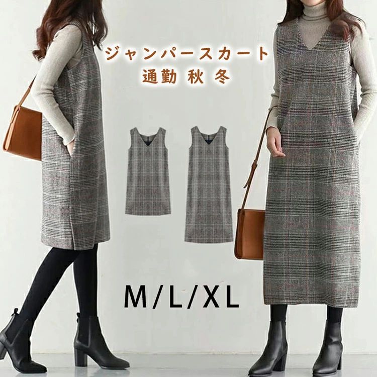| 商品名 | ロング丈 フォーマル 冬 vネック オフェス 秋 チェック柄 通勤 ミディアム丈 ノースリブ カジュアル グレンチェック 選べる長さ ワンピスター 通学 |