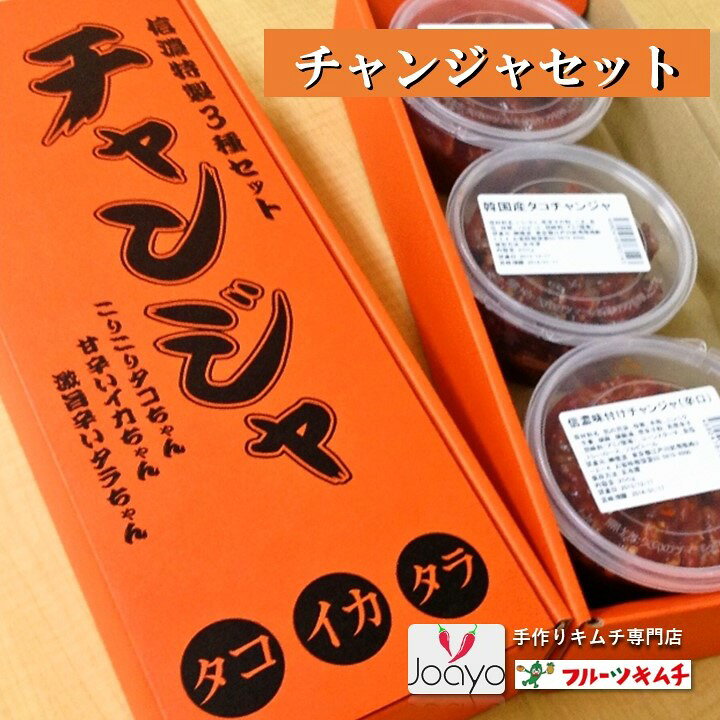 【商品仕様・詳細を見るには】商品を選択してください。 プレゼント用箱でお送りいたします。 商品説明名称チャンジャ3点セット(タラ、タコ、イカ) 原材料名 信濃熟成チャンジャ:チャンジャ(鱈の胃袋(アラスカ産)、唐辛子、 にんにく、食塩、ごま油、生姜)、唐辛子粉、水飴、青唐辛 子、ごま油/調味料(アミノ酸等)、増粘剤(キサンタンガム)、 酸味料、甘味料(アセスルフャムK、ネオテーム)、ビタミンB1 、pH調整剤 イカチャンジャ:イカ(韓国産)、唐辛子粉、にんにく、ごま油、ごま、水飴、食塩、砂糖 /調味料(アミノ酸など)、ソルビット タコチャンジャ:脚長タコ(韓国産)、唐辛子粉、にんにく、ごま油、ごま、水飴、食塩、砂糖 /調味料(アミノ酸など)、ソルビット 内容量200g×3個賞味期限製造日から1ヶ月保存方法・賞味期限 冷凍(一年)冷蔵(1ヶ月)符を開けてから7日間 (1℃〜5℃保管時) ・保存方法 流通:冷凍発送 使用時:冷蔵保管 解凍:冷蔵解凍 長く保管する際には再冷凍してください。 味の変化はありません。 (食べ残しは冷蔵保管してください。また長時間保管される場合は冷凍保管してください)製造者株式会社信濃東京都江戸川区南篠崎3-2-4特徴 弊社のチャンジャは辛口です。生の青唐辛子をいれ、辛さと唐辛子の風味を生かすことでどこでも味わったことのない味付けができました。お客様の声:この味と辛さにはまってしまい、その場で200gをすぐ食べてしまった。次回から最低500gは買わないとね【1品目】甘辛いイカチャンジャ200g 【2品目】コリコリ辛口タコチャンジャ200g 【3品目】激旨辛いチャンジャ200g(タラの胃袋) 信濃特製チャンジャは他では味わえない弊社だけのオリジナル味付けです。激辛口ならがもその魅力にはまってしまう!大人気のチャンジャポテトサラダには他のチャンジャを使うと味が落ちますのでご注意ください